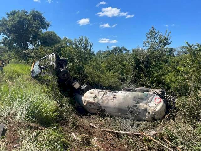 O acidente aconteceu na altura do km 3 da rodovia, a cerca de 200 quilômetros de Campo Grande. Na carreta, também viajava a mulher do condutor. O casal transportava cimento que seria entregue em empresa da capital, na Vila Cidade Morena.