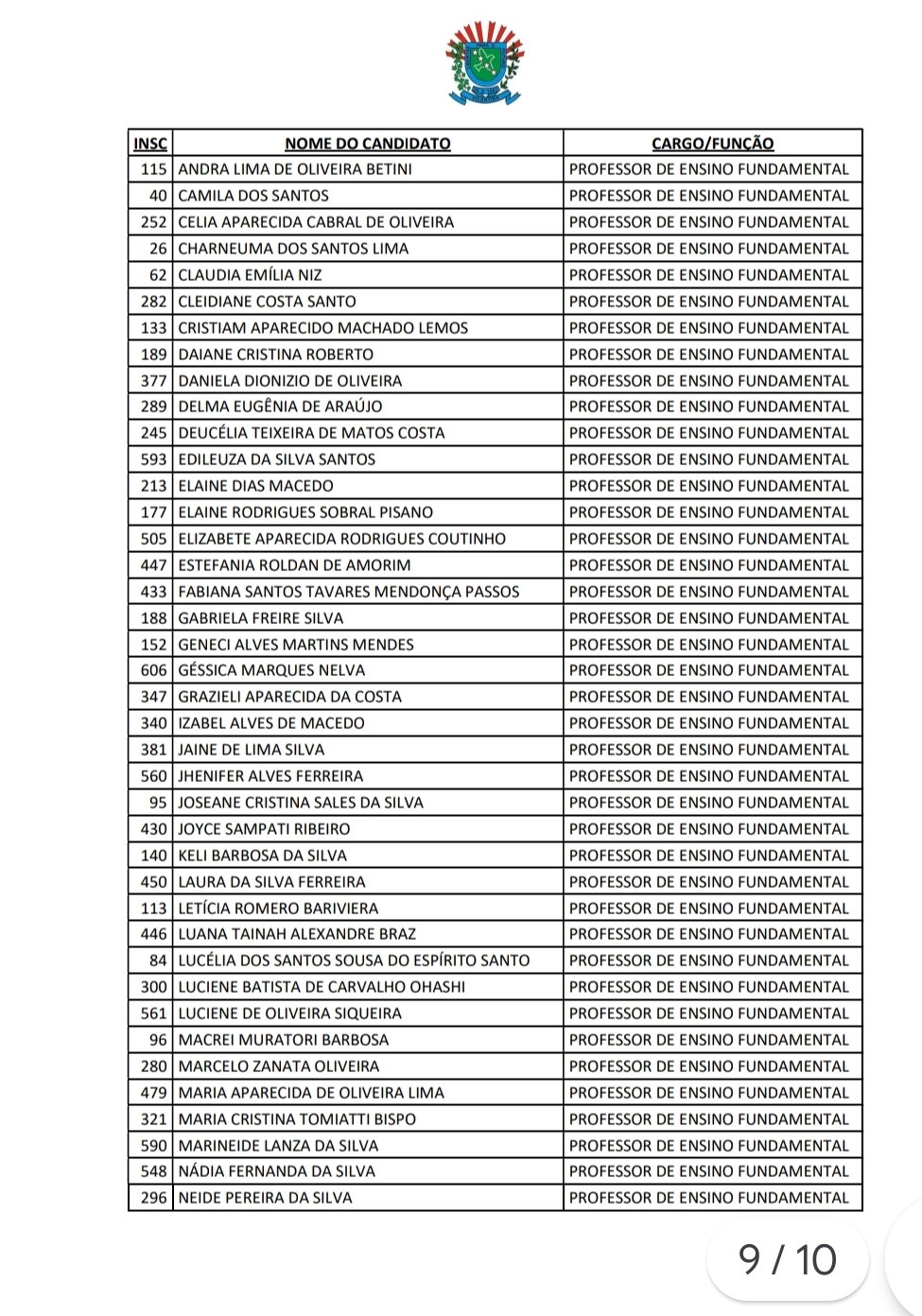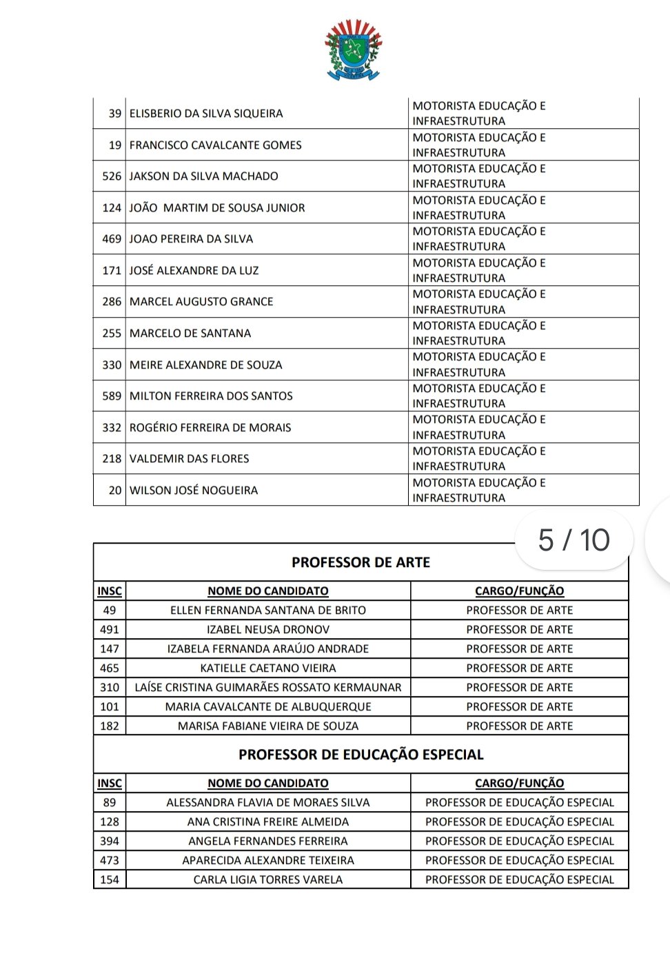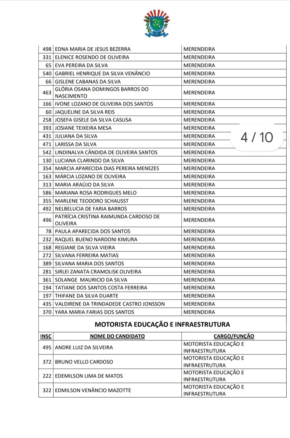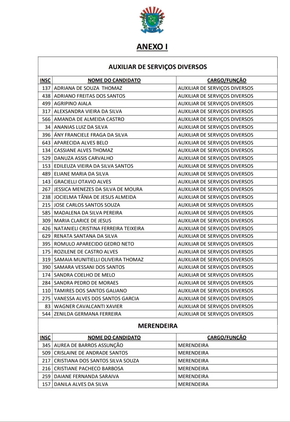 candidatos dos cargos de AUXILIAR DE SERVIÇOS DIVERSOS, MERENDEIRA, MOTORISTA DE