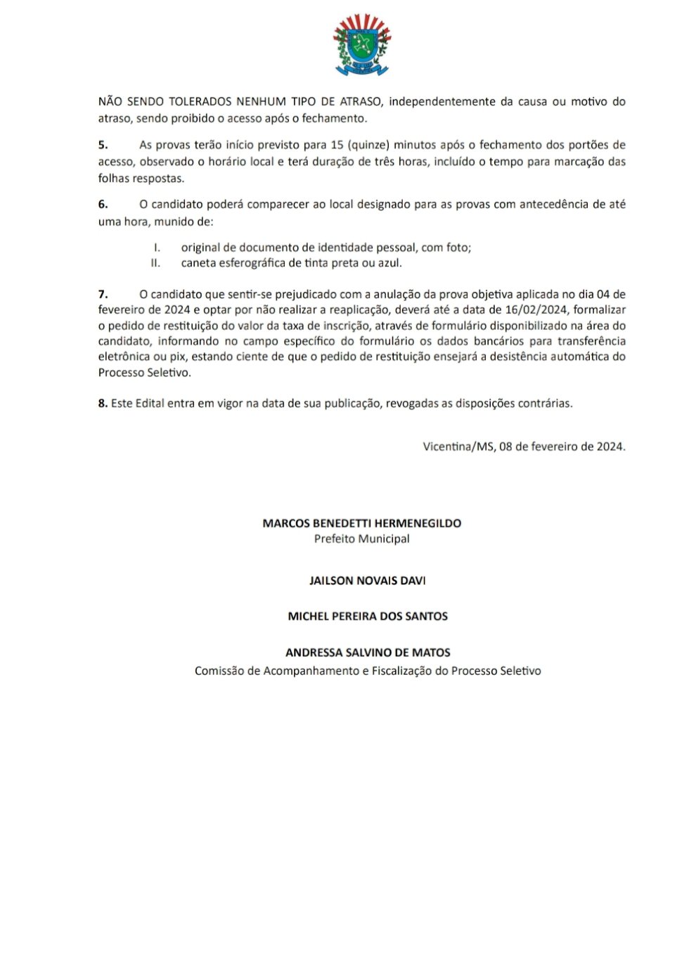 VicenƟna/MS, 08 de fevereiro de 2024.