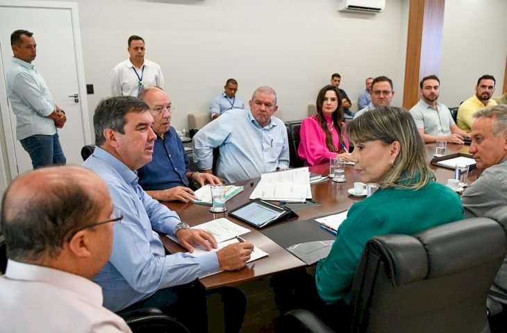 A prefeita de Água Clara, Gerolina da Silva Alves, acompanhada de secretários municipais e vereadores, se reuniu nesta quarta-feira (6) com o governador Eduardo Riedel para discutir novos investimentos para o município, que incluem pavimentação asfáltica nos bairros Jardim das Palmeiras, Portal do Mangaba e Jardim Morumbi, além de recursos que serão alocados para o hospital municipal e aeródromo.