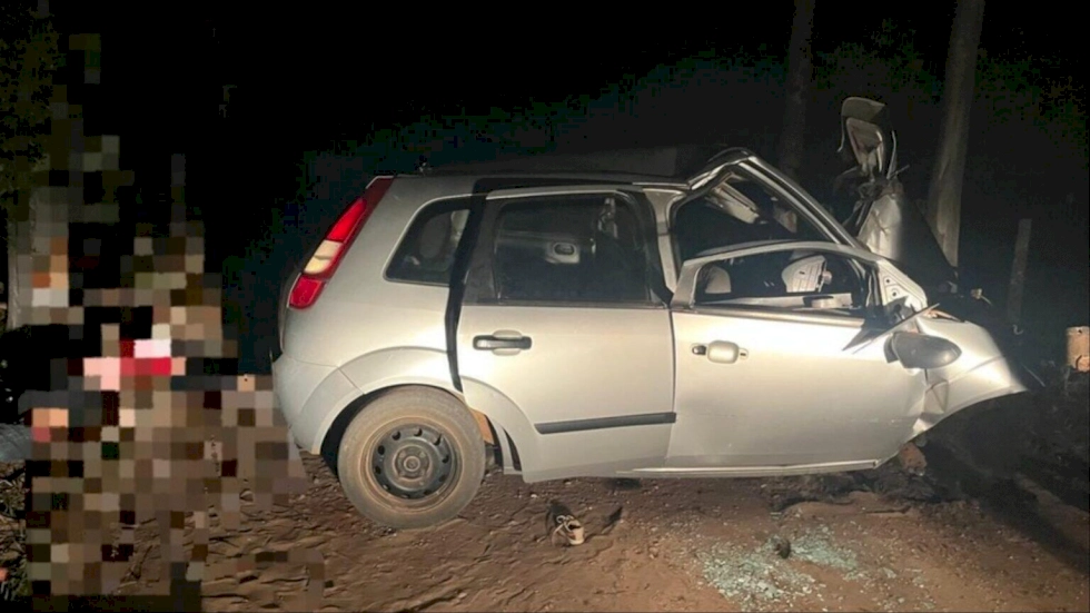 O carro bateu contra um eucalipto na estrada e, devido ao impacto da batida, o motor foi arrancado. O veículo ficou completamente destruído após o acidente na noite desta quinta-feira (3).
