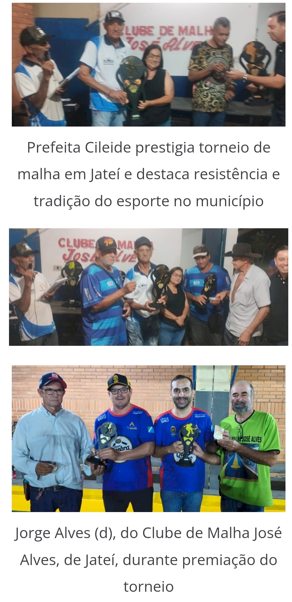 O campeonato interestadual de malha em Jateí foi prestigiado pela prefeita Cileide Cabral de Brito e pelo vice-prefeito Francisco Tiquinho de Araújo Alves, que saudaram os participantes locais e deram as boas vindas aos competidores de outros municípios e também do Paraná.