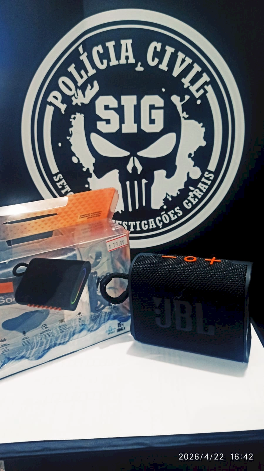De acordo com o relato da vítima, o crime ocorreu em uma loja de presentes, de onde foi subtraída uma caixa de som portátil de pequeno porte. Imagens do sistema de segurança flagraram o momento em que uma mulher coloca o objeto dentro de sua bolsa e deixa o local, acompanhada de outra pessoa.
