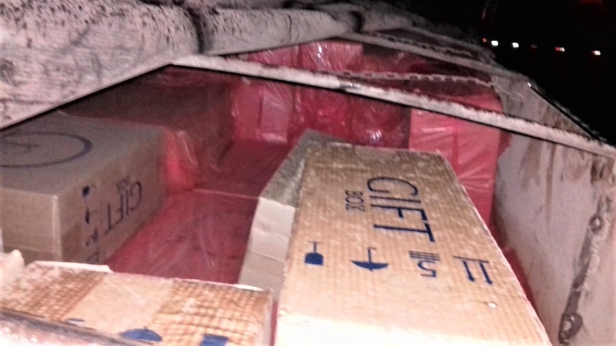 A equipe abordou na área urbana do distrito uma carreta, sendo que, ao realizar a entrevista com o motorista, um homem de 39 anos residente no interior do Paraná, ele afirmou que transportava cigarros de origem paraguaia.